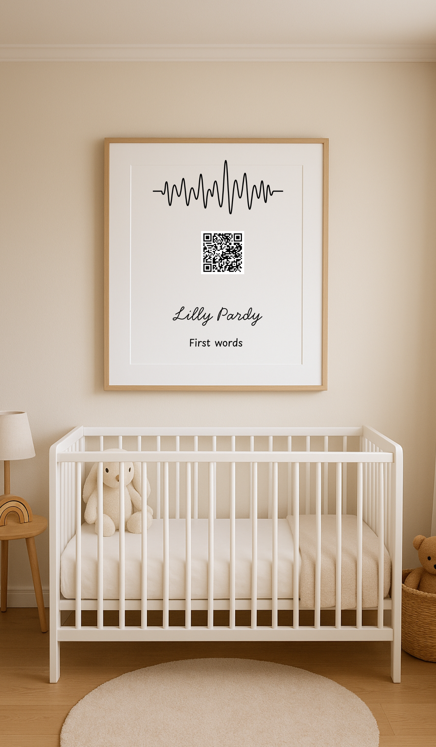 Upload your favourite baby giggle/words and turn it into a keepsake you can proudly display at home or gift to your loved ones — so everyone can cherish that special memory forever.